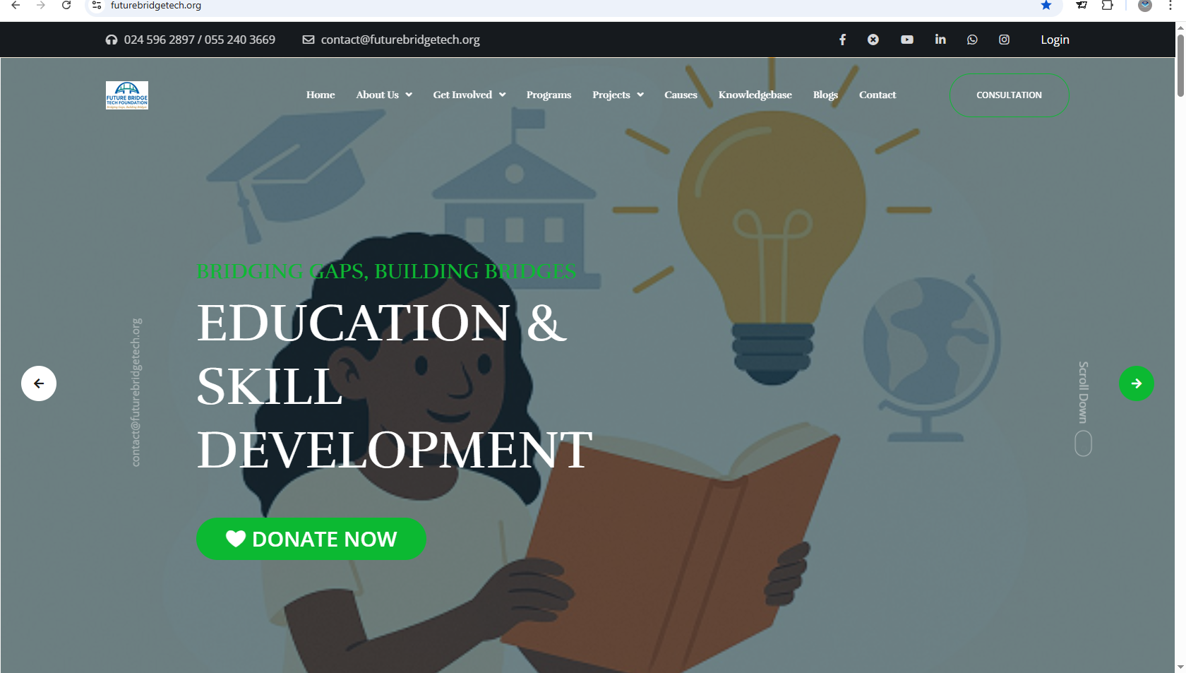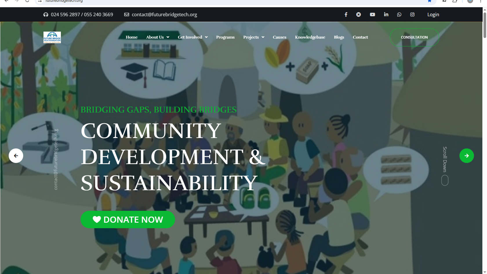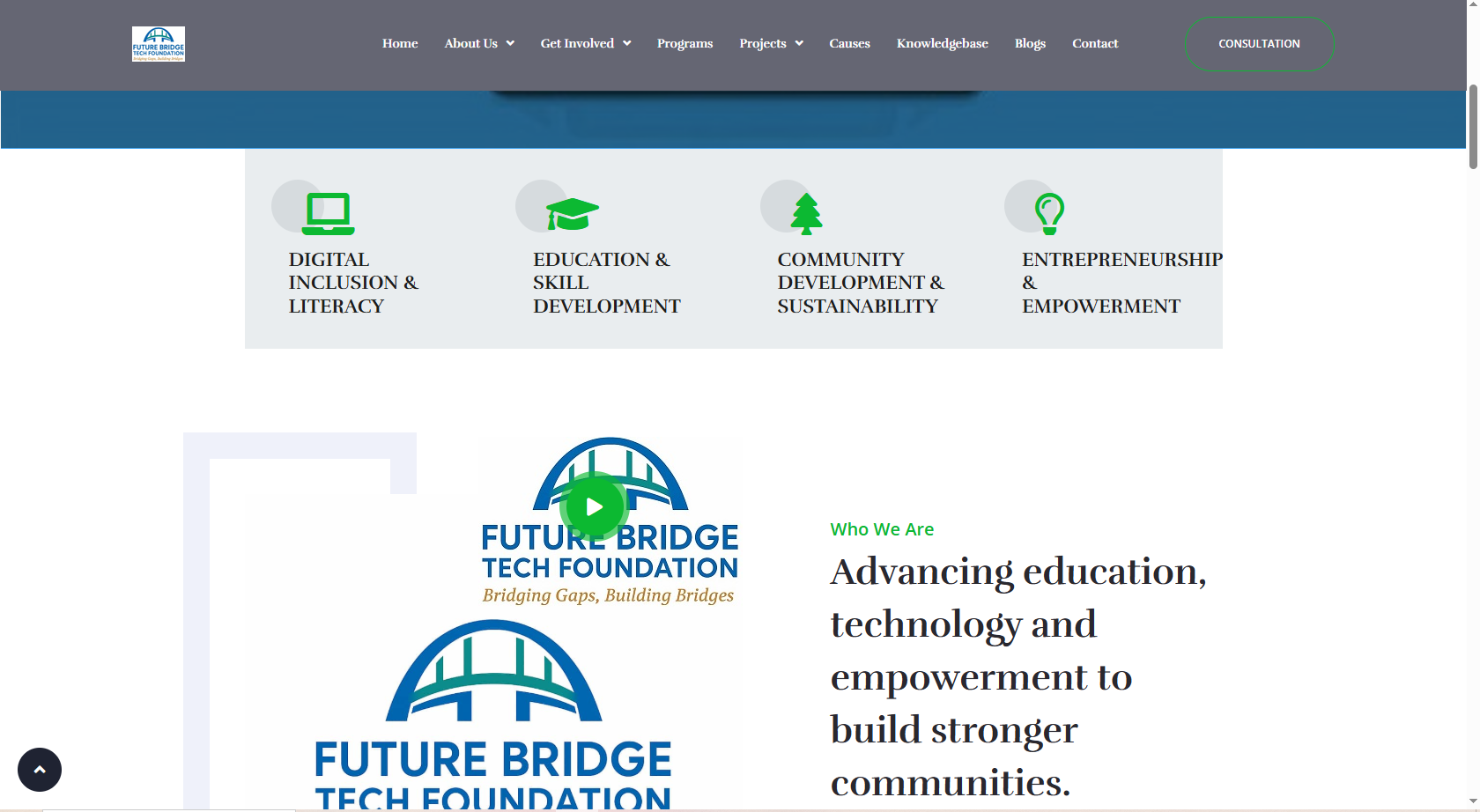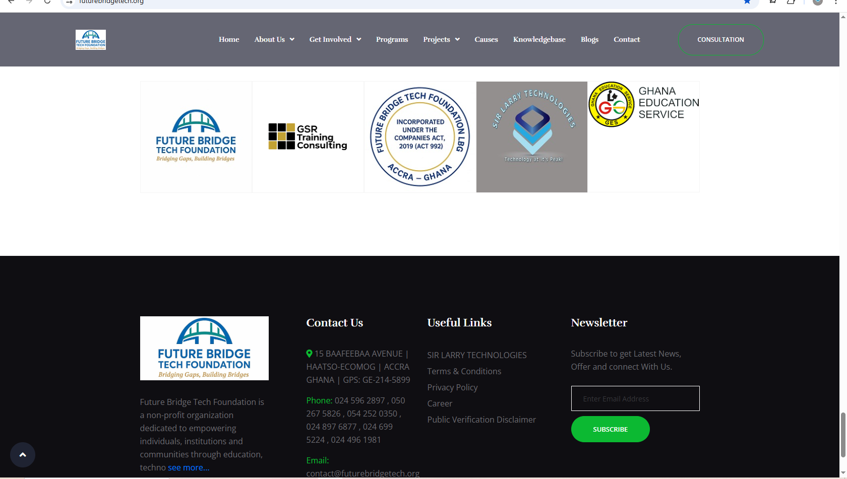 Future Bridge Tech Foundation partnered with SIR LARRY TECHNOLOGIES to design and develop a highly advanced digital platform to support its mission of innovation, education, and community impact. As a flagship project, the system was built to go beyond traditional NGO websites by incorporating powerful, scalable, and secure digital solutions tailored for modern nonprofit operations.